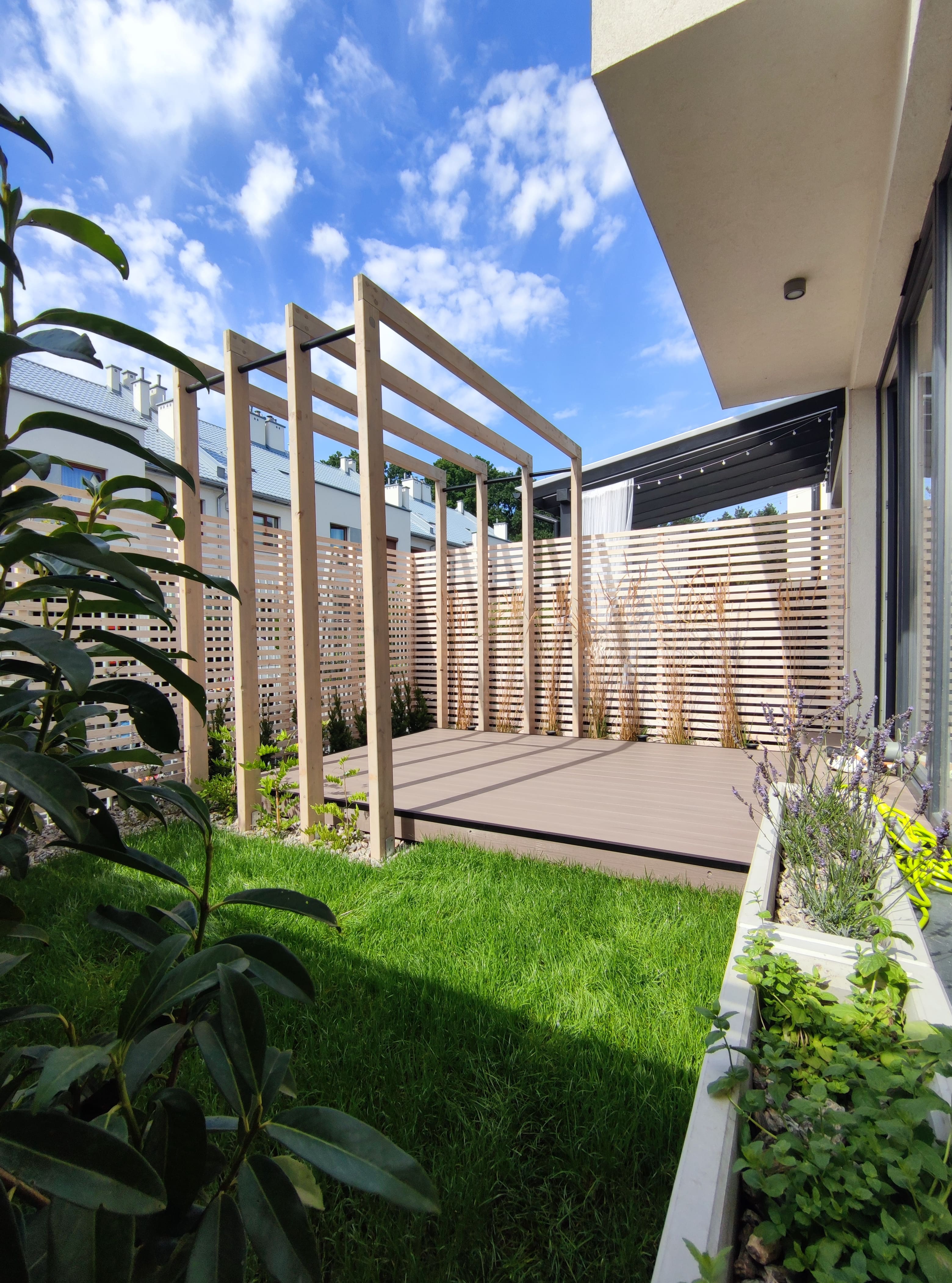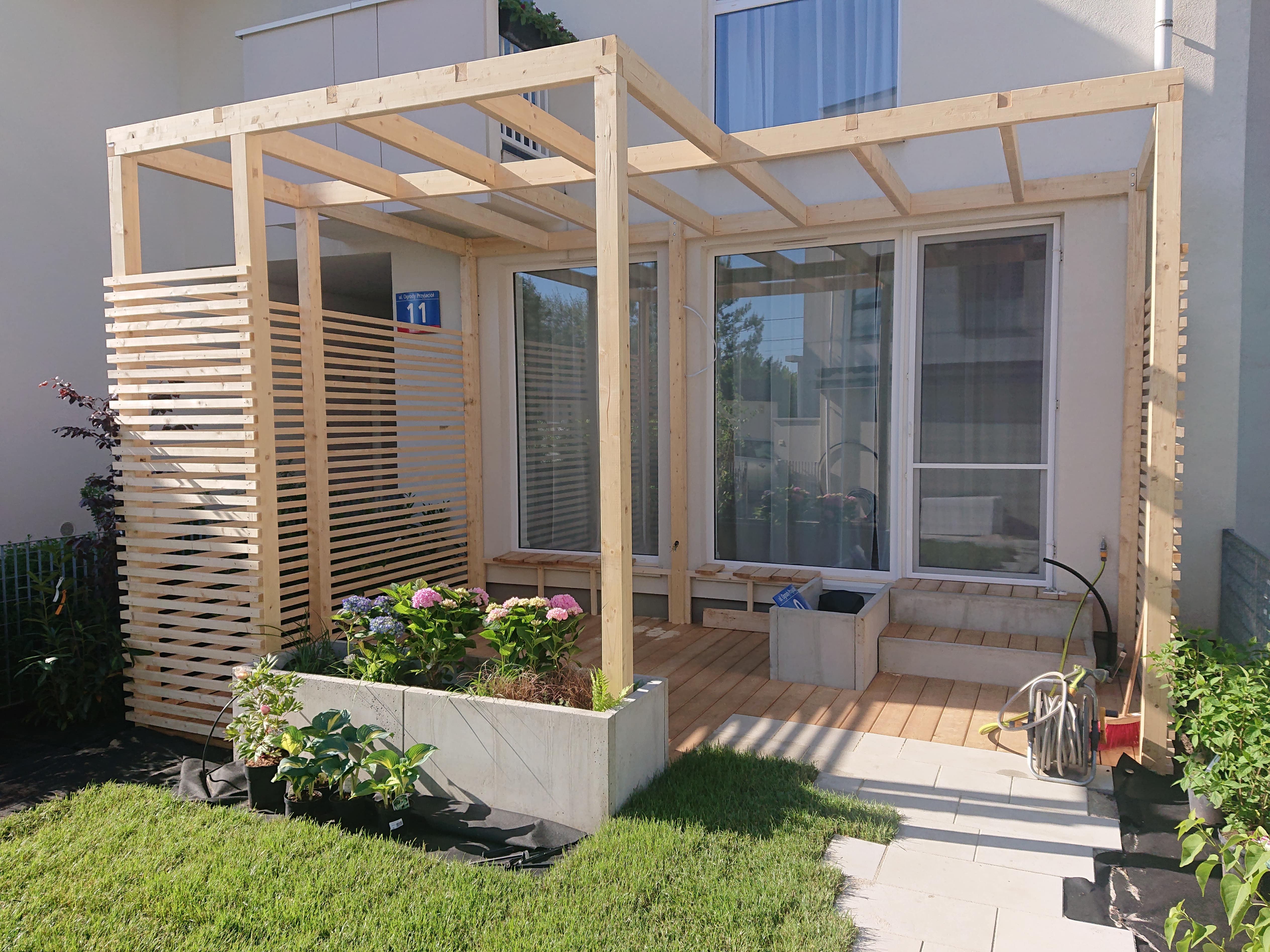 W zakresie naszych usług wykonujemy też konstrukcje nad tarasami tworzące ażurowe zadaszenie tak zwane pergole. Taka konstrukcja daje nam dodatkowe możliwości, do ścianek możemy przymocować różne formy osłonięcia, od ruchomych żaluzji po lamele czy kratki, na górnej części możemy przymocować żagle zacieniające lub wykonać pełne zadaszenie. Nasze konstrukcje wykonujemy z belek BSH.